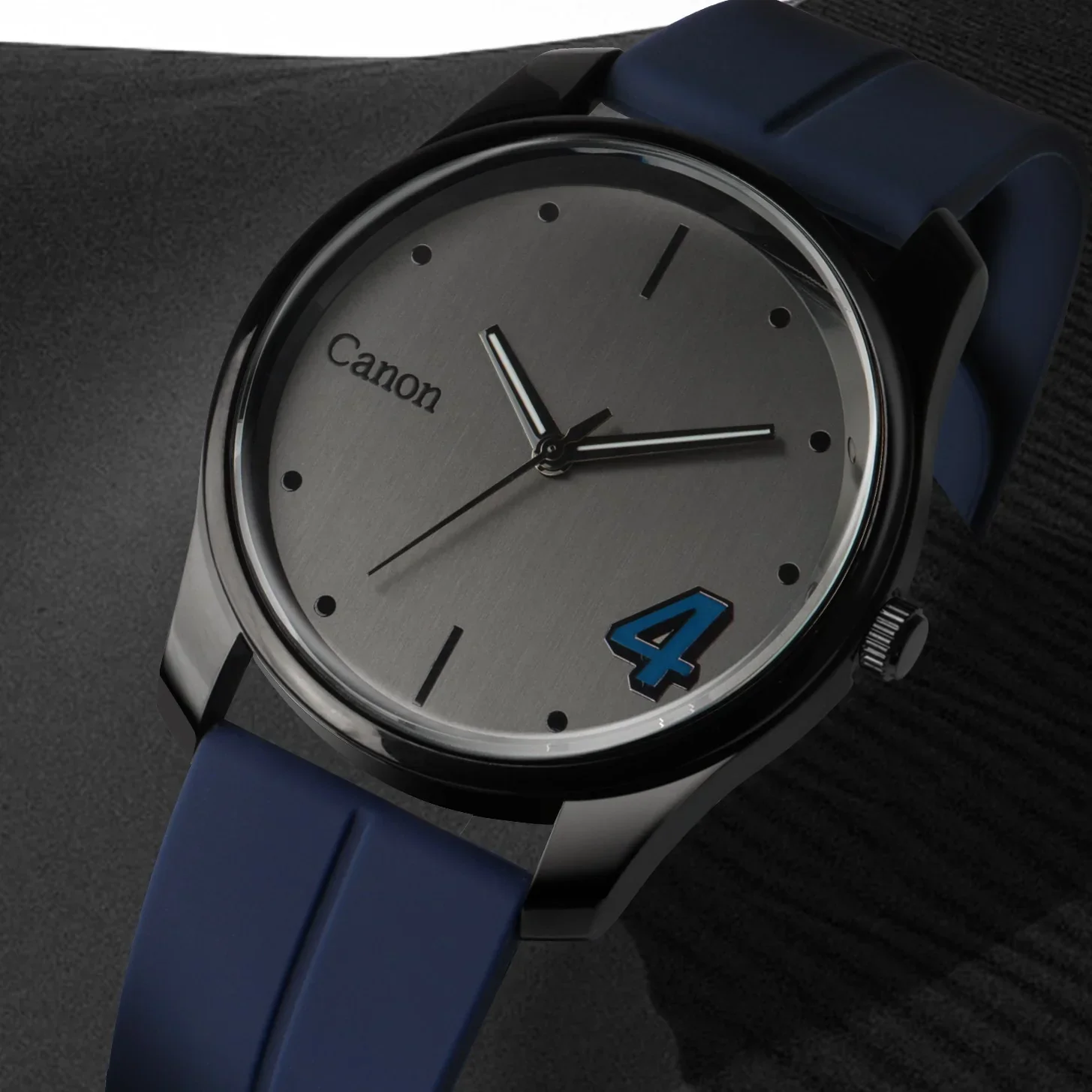 Canon Quartz Blue Casual Watch for Men CN-441 captures urban minimalism with a confident edge designed around a clean, textured grey dial and finished with a single graphic pop of cobalt blue for sharp, modern contrast.