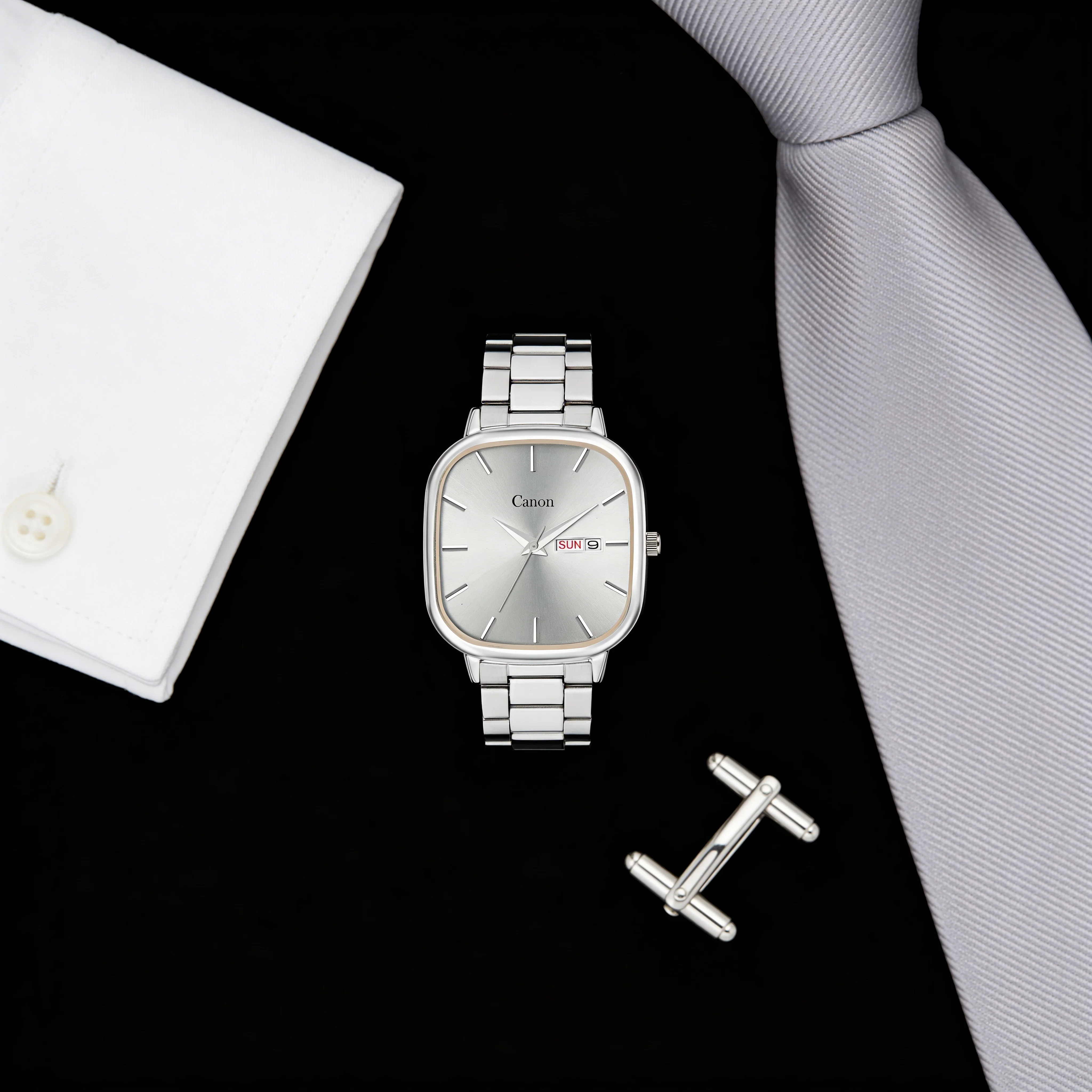 Lucid Silver Sunburst Soft-Square Watch for Men – 460
